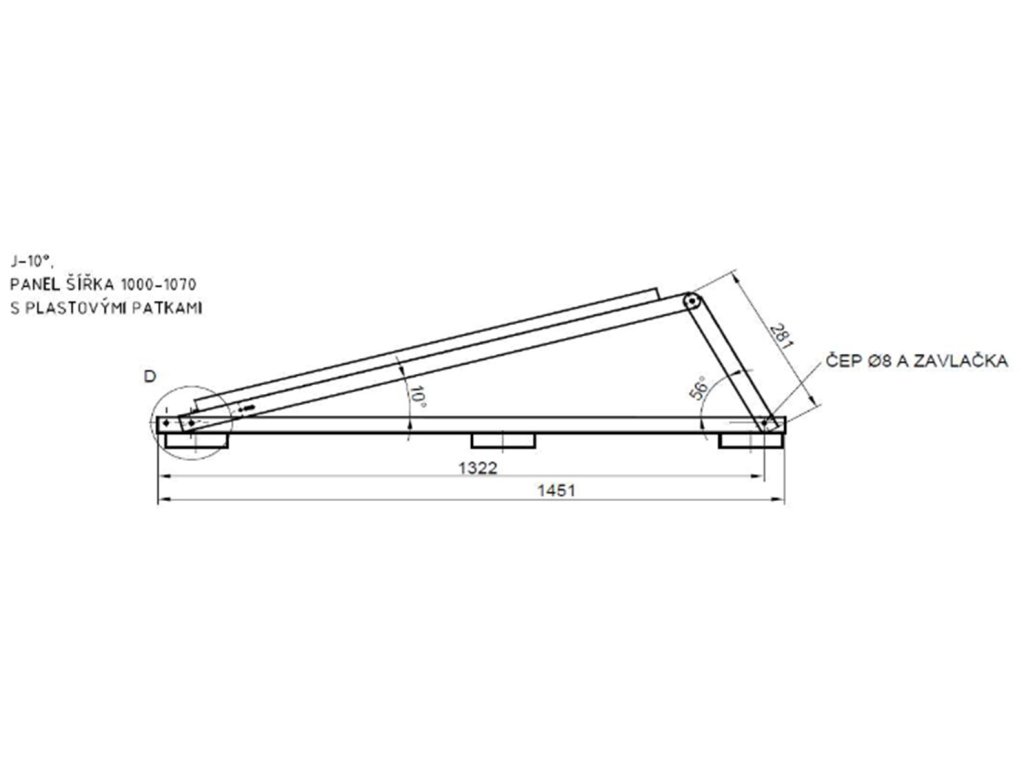 10° Konstr. J malá 100 - 107 cm BASIC / délka základny 1451 mm / s patkami